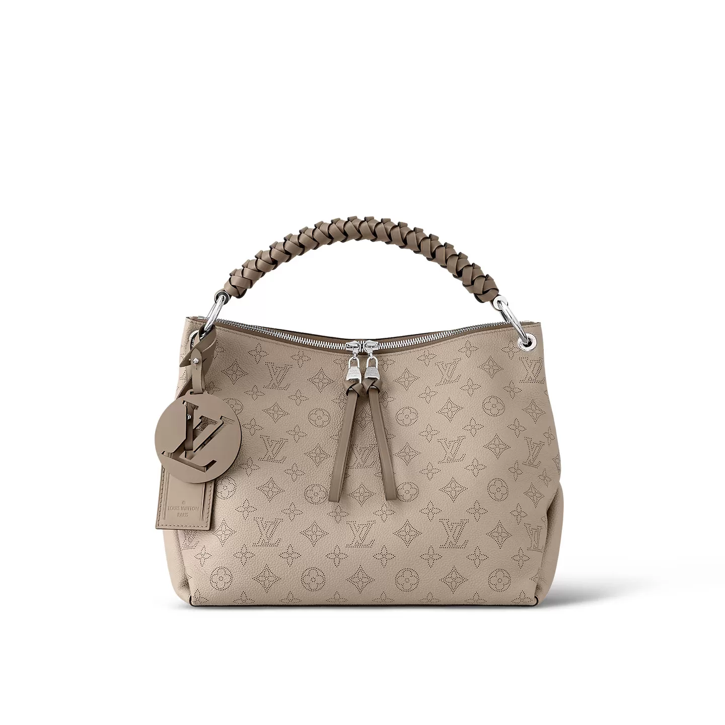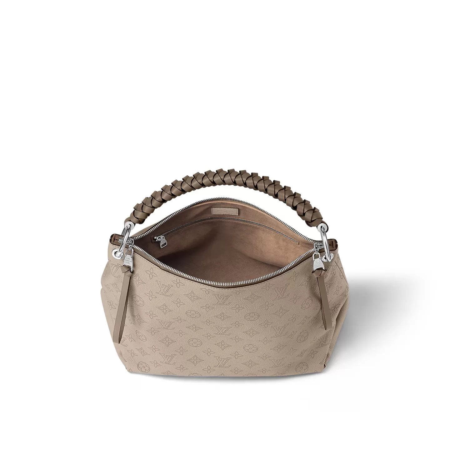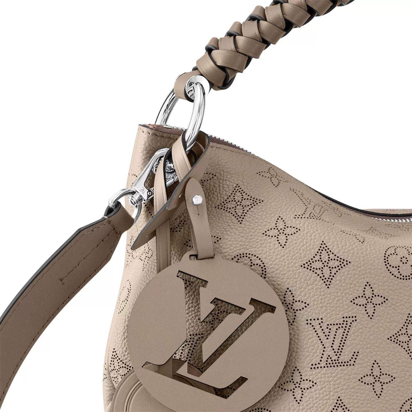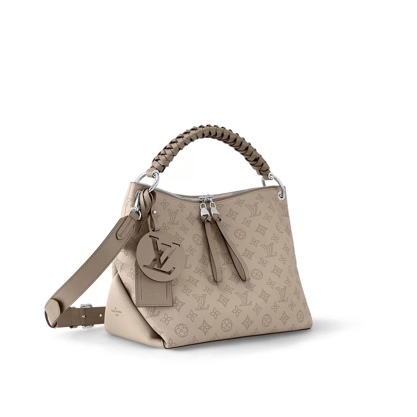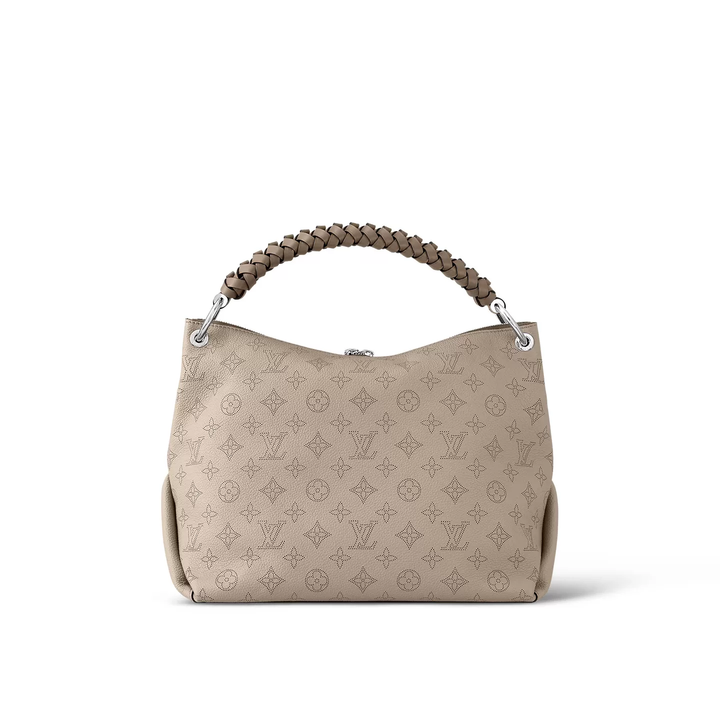 The Beaubourg Hobo MM bag is made from Mahina calf leather perforated with the Monogram pattern. It boasts a stylishly braided-leather top handle, with hand-painted edge-dyeing along the braids. The leather zip pulls and large LV charm sign the bag. A detachable, wide leather strap means that this supple bag feels comfortable against the body.