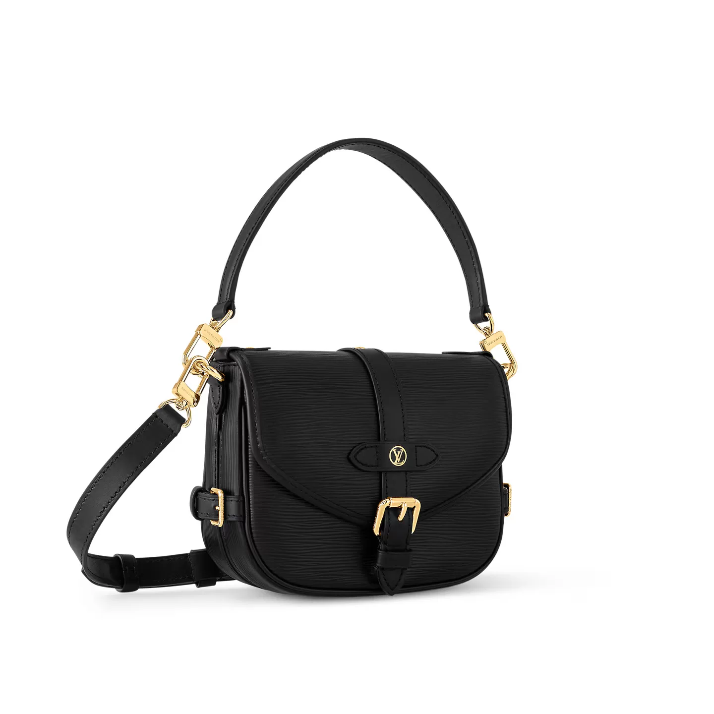 This edition of the Saumur BB in a new, softer Epi leather revisits an archival design. The saddle-bag silhouette is detailed with House signatures, including the LV Circle emblem and finely crafted buckles. The front buckle is fitted with a magnetic closure, a modern touch. The strap and top handle are both detachable, for a variety of styling options.