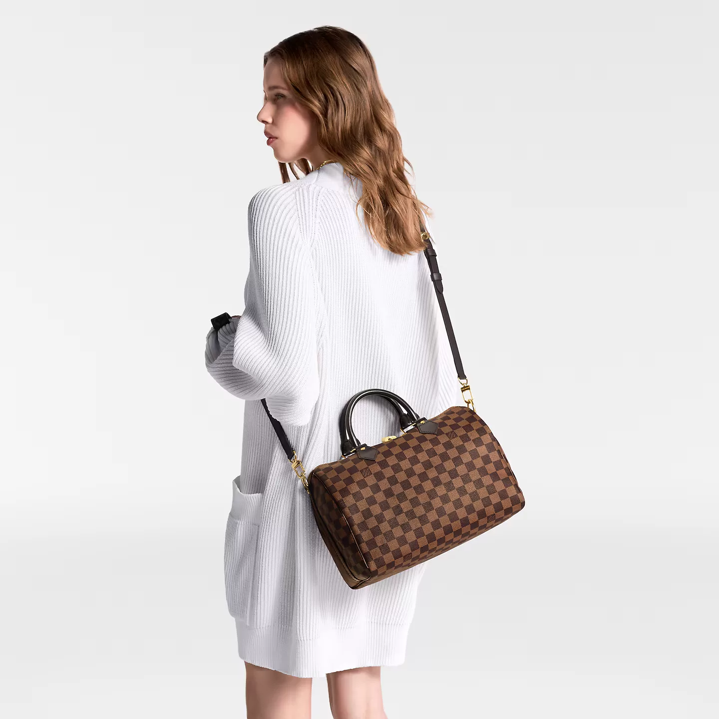 The Speedy Bandoulière 30 in elegant Damier Ebene canvas is an ideal city bag for every day. Originally created for travelers in the 1930s – the name refers to the era’s rapid transit – every feature of the Speedy’s design is iconic, from its unmistakable shape to the rolled leather handles, engraved padlock and detachable strap.