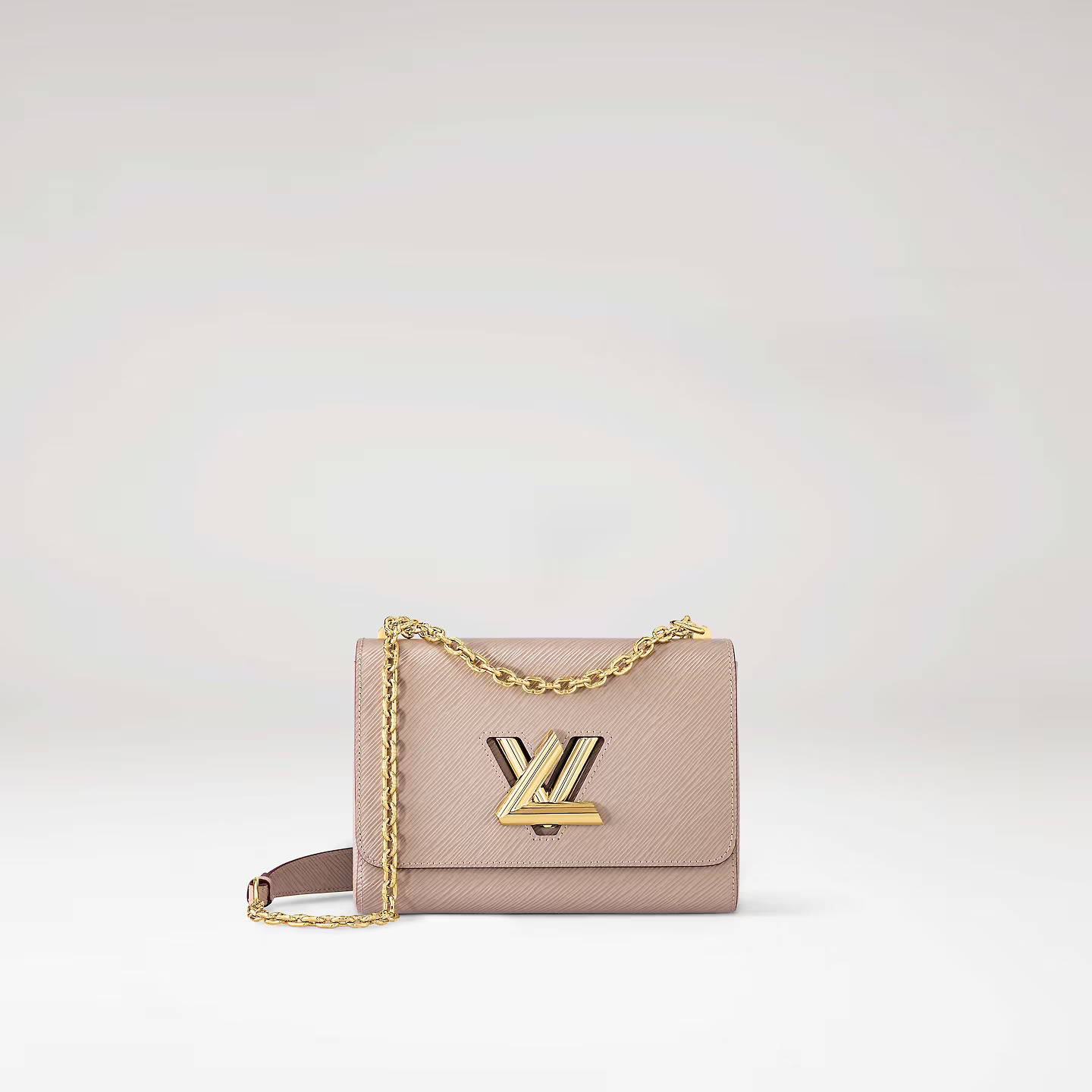 Crafted from the House’s emblematic Epi leather, the Twist MM chain bag features the now-iconic LV Twist lock, a sculptural signature in gleaming golden metal. Unexpectedly roomy thanks to the cleverly designed “wave” base, this beautifully made bag is a fashionable day-to-evening companion. The sliding chain strap can be doubled for shoulder carry or lengthened for cross-body wear. A New Classic of the House, the Twist bag was introduced at the 2015 Cruise show.