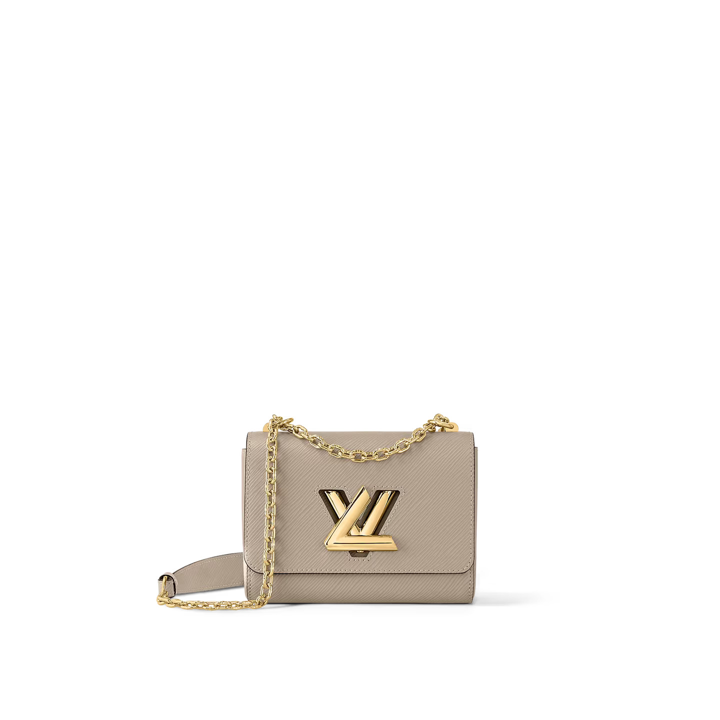 Made from Epi leather and accented with the gleaming gold-color LV Twist lock, this Twist PM hand bag now comes in an essential new color that’s easy to match: a warm and elegant gray. This compact bag is unexpectedly roomy thanks to its cleverly designed “wave” base.