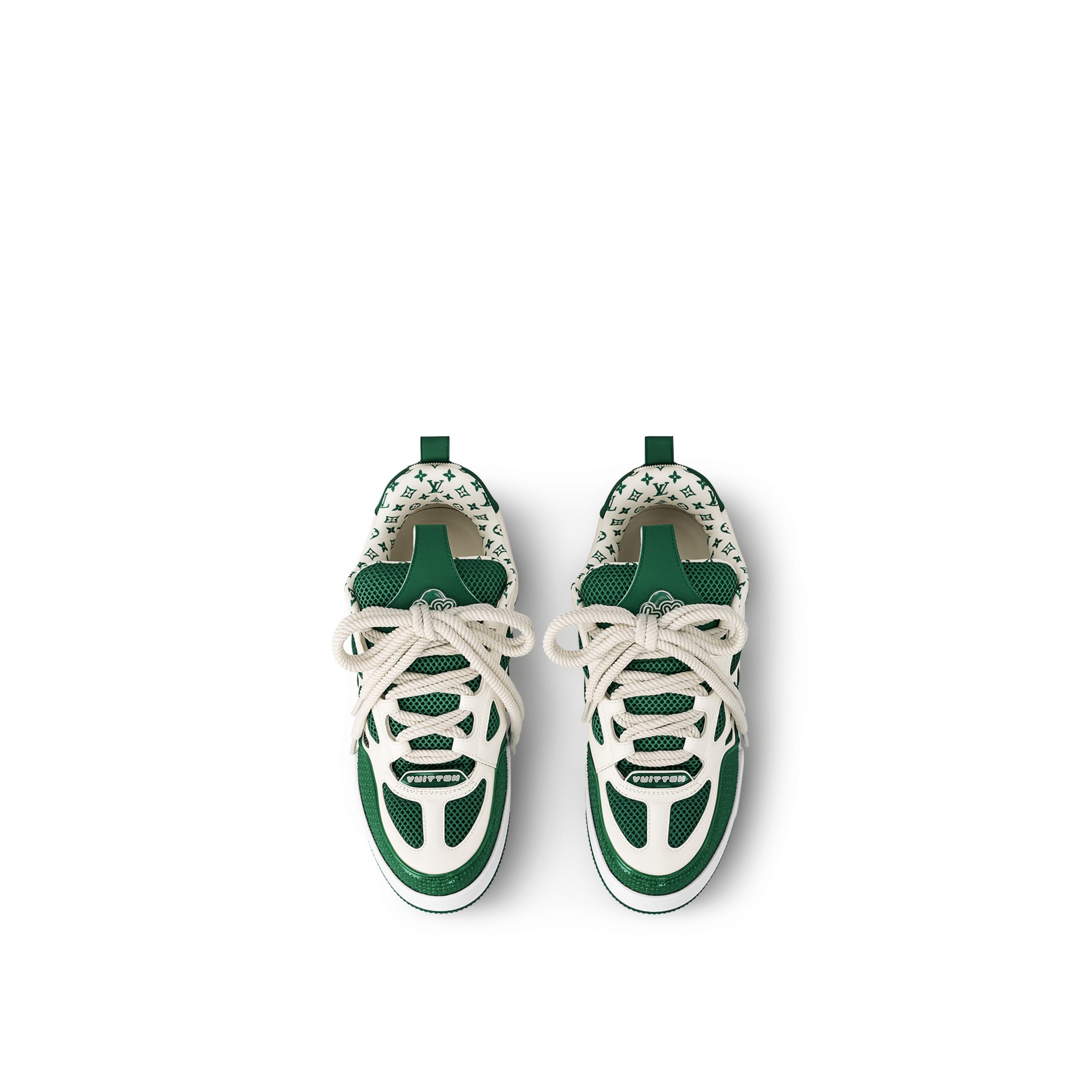 The LV Skate sneaker is revisited this season in a mix of materials, including technical mesh. The design references Nineties skate shoes and features a technical lining with a Monogram print and extreme padding for optimum comfort. This bicolor model incorporates a Monogram Flower on the side and three Monogram Flowers on the outsole.