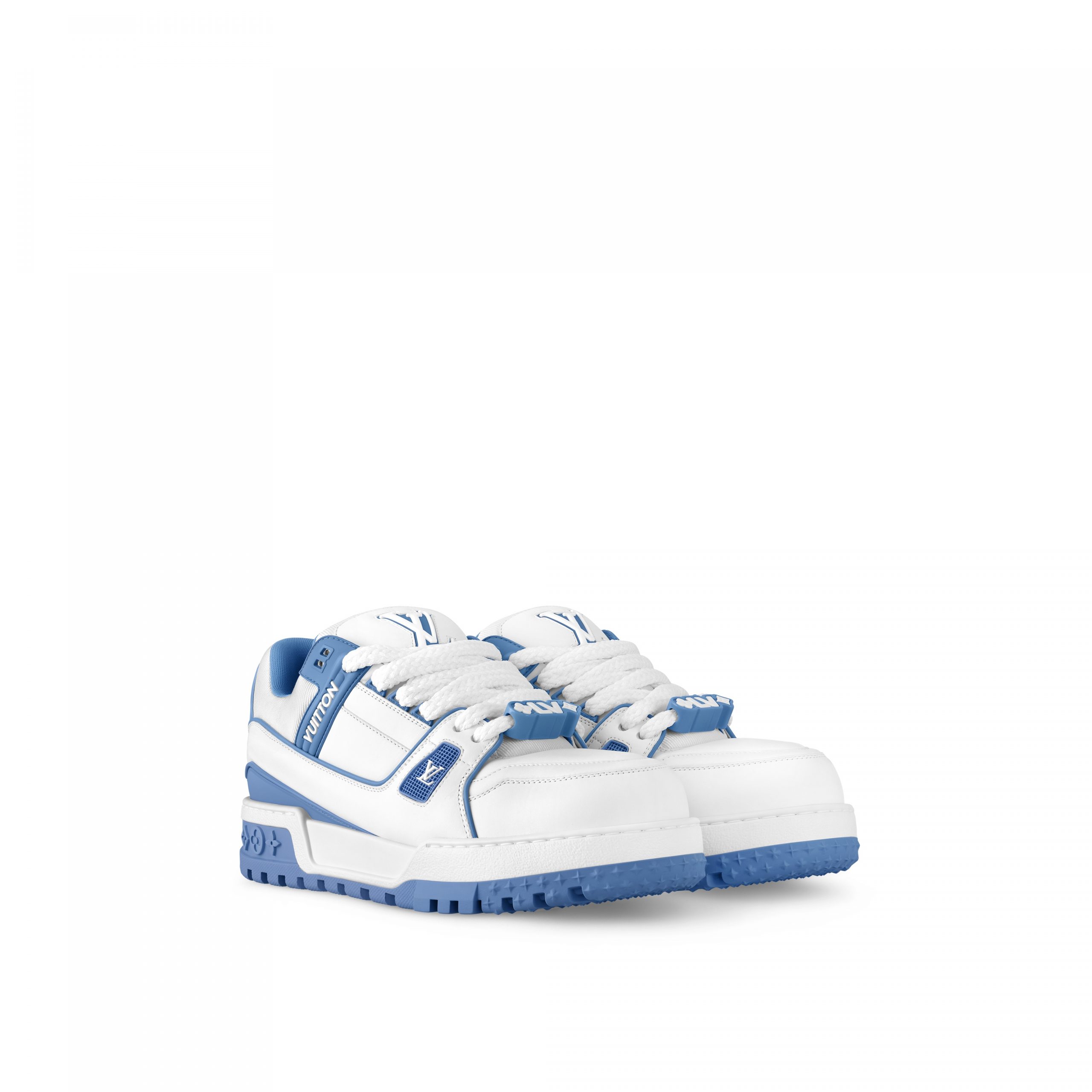 The LV Trainer Maxi sneaker is an oversized interpretation of the cult LV Trainer sneaker originally designed by Virgil Abloh. This bicolor version, which is also available in women’s sizes, comes in smooth calf leather with rubber LV Initials logos. It is finished with thick textile laces embellished with Louis Vuitton signature beads.
