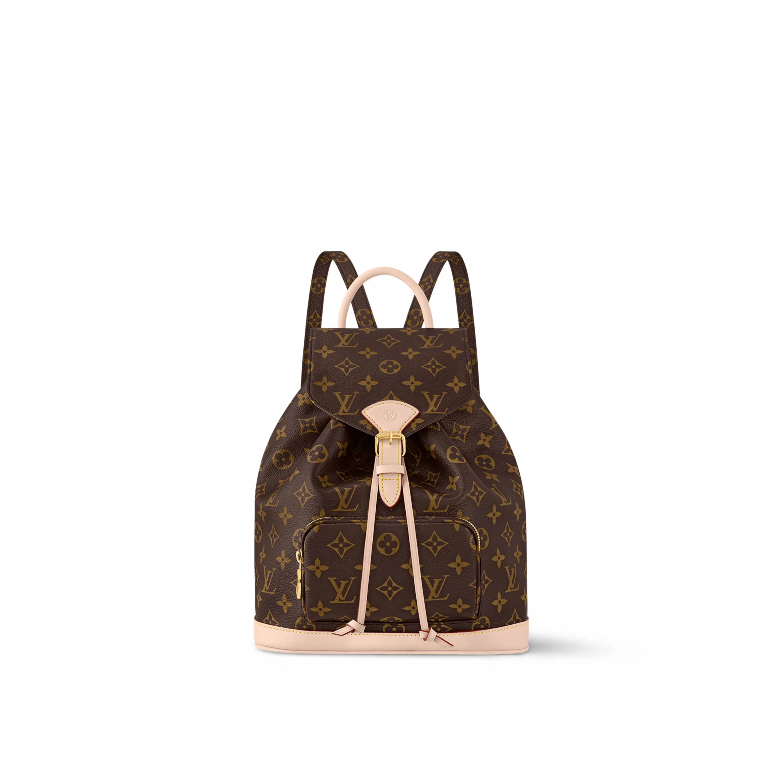 Inspired by the House’s Montsouris bag from 1994, the practical and stylish Montsouris PM backpack by Nicolas Ghesquière is made from Monogram coated canvas, with cowhide-leather trim. The leather top handle and two adjustable leather straps give carry options while the tasteful drawstring and magnetic closure bring security.