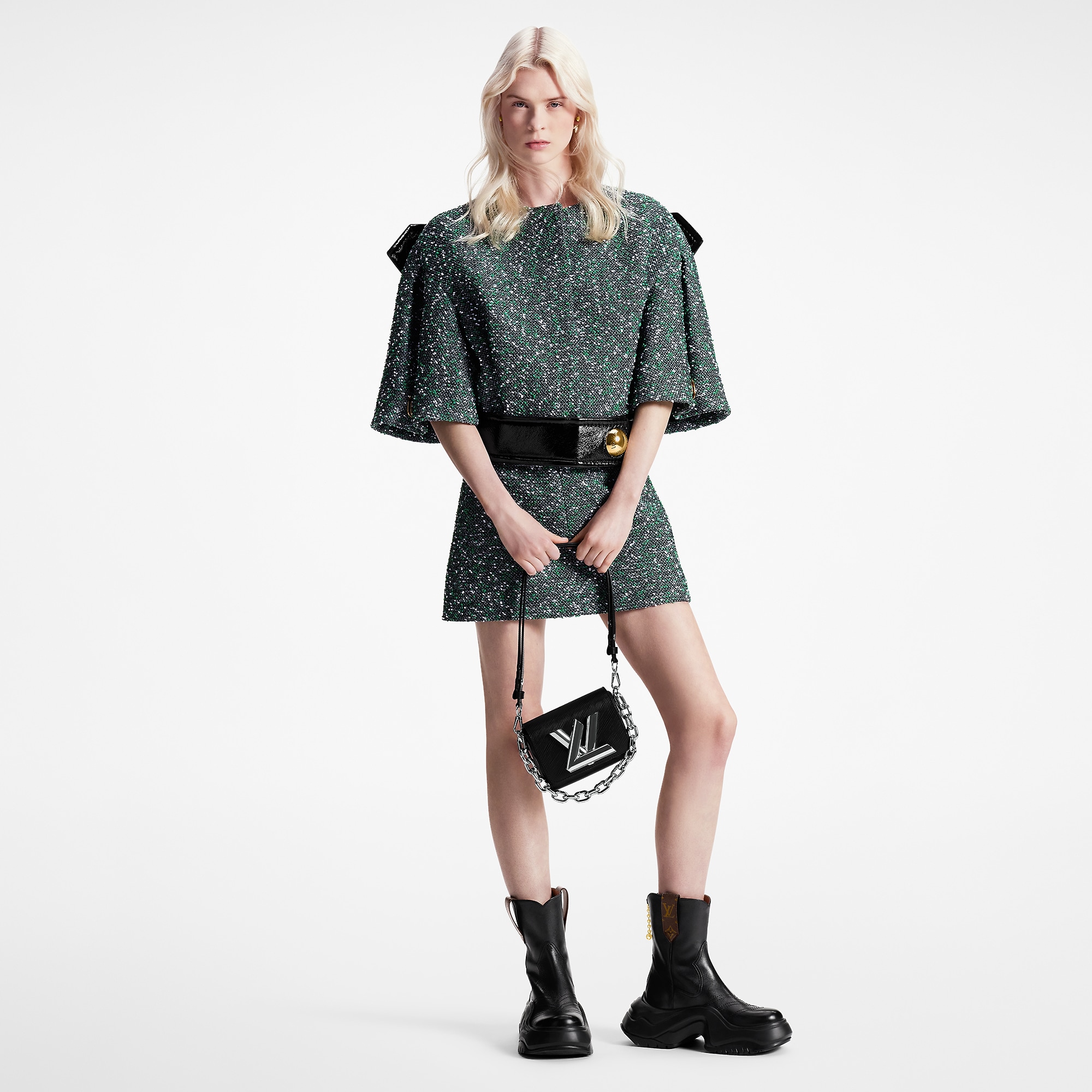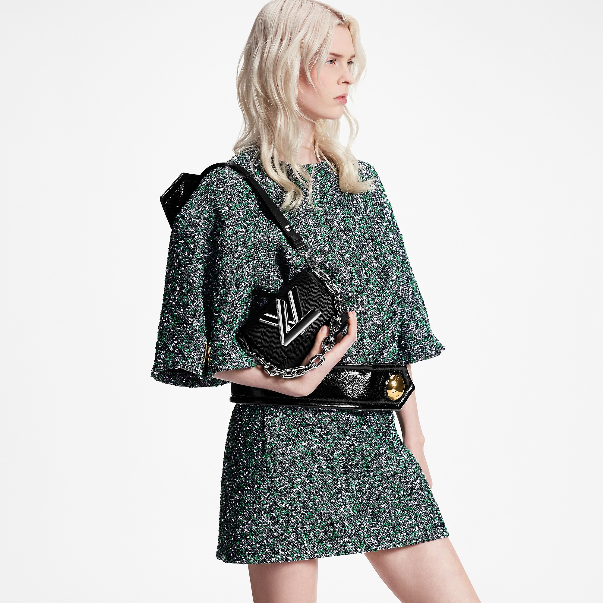 - Flap closure with decorative LV Twist lock (not functional)