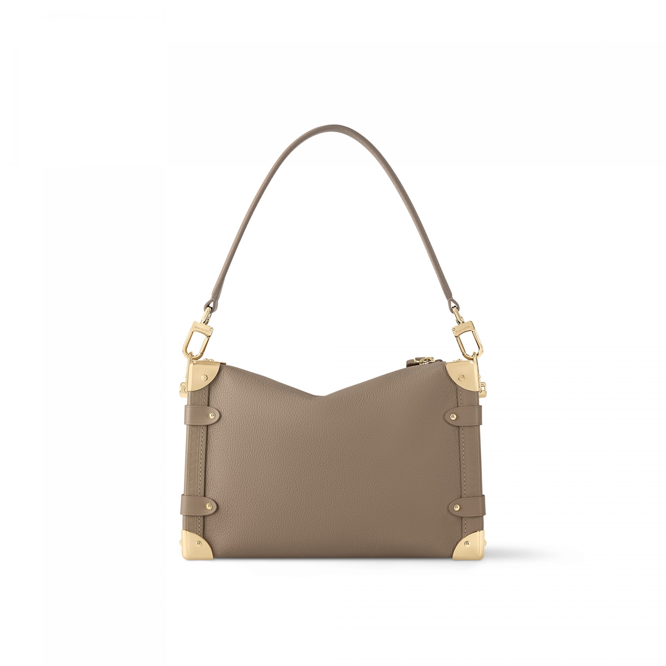 The elegant Side Trunk MM handbag is Creative Director Nicolas Ghesquière’s ode to the House’s historic trunks. Made from grained calf leather with smooth cowhide-leather trim, it features an S-lock and reinforced metallic corners. The removable handle enables hand carry while the detachable and adjustable leather strap adjusts for shoulder and cross-body wear.