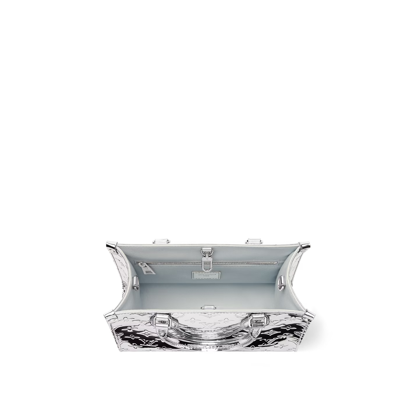 The LV Ski collection presents this Monogram Miroir edition of the capaciously sized OnTheGo PM. Crafted from canvas that has been laminated for added durability, it is offered in a light-catching Silver colorway with matching hardware. The versatile design is fitted with multiple pockets inside, and can fit everyday essentials, including a small book.