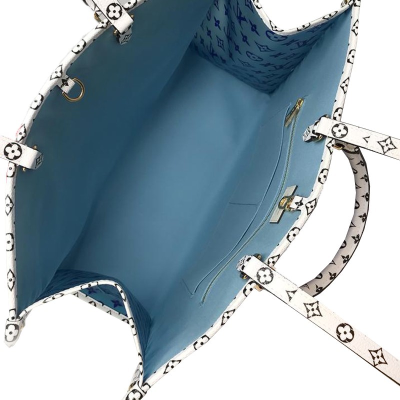 The aptly named Onthego tote bag goes shopping, to work or off for the weekend. With its ample capacity and oversized Monogram motif (contrasted with Mini Monogram trim), this modern carryall makes a punchy fashion statement. Articulated Toron handles and two shoulder straps ensure a comfortable carry, all day long.