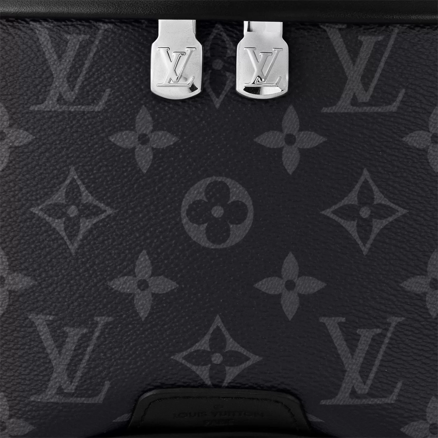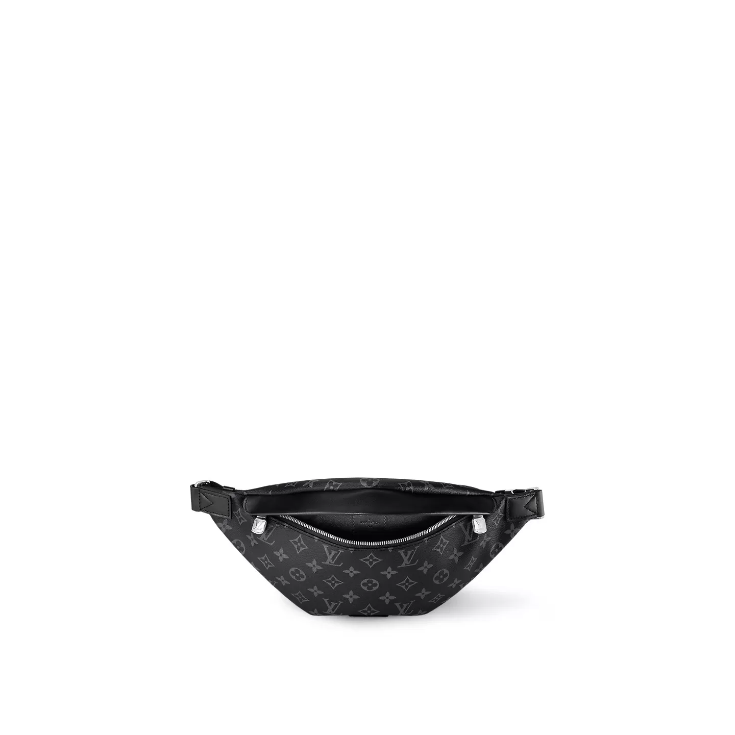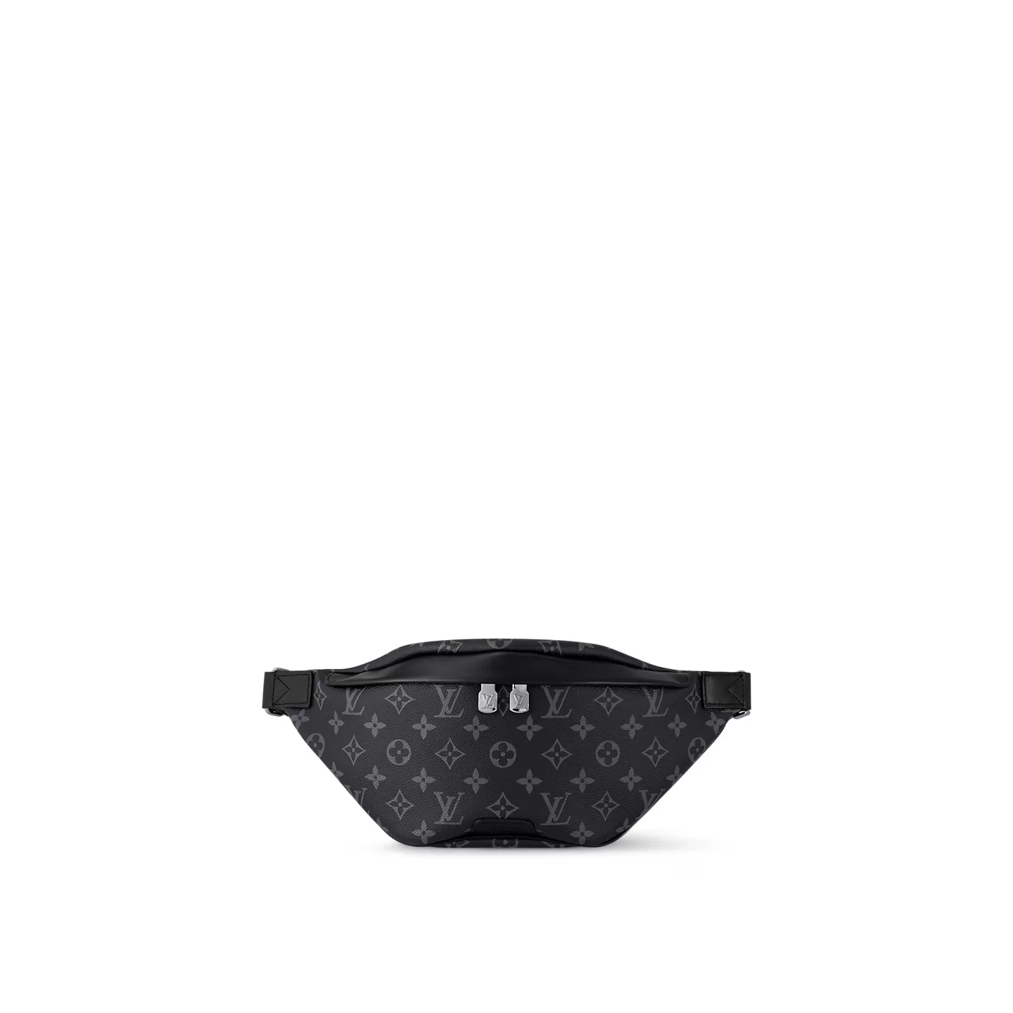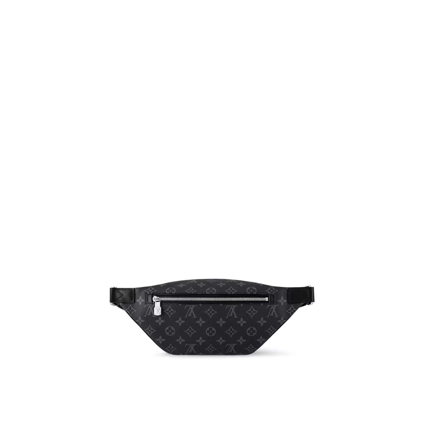 Crafted from Monogram Eclipse canvas, the Discovery bumbag offers the ideal mix of casual chic and modern functionality. With a body-friendly shape and adjustable belt, it can be worn around the waist, over the shoulder or slung stylishly across the chest. Zipped pockets, front and back, provide easy access to phone, cards and keys.