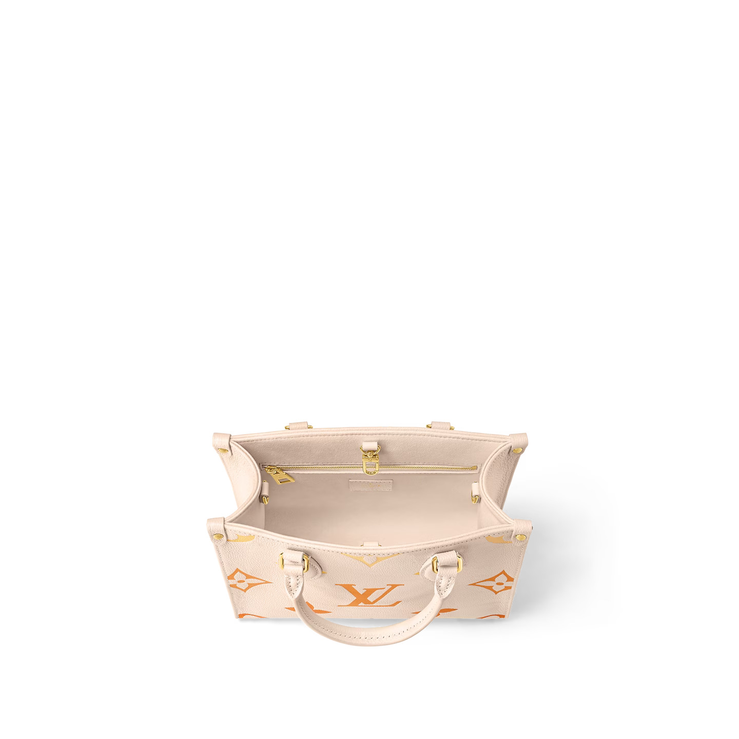 Fashioned from in supple Monogram Empreinte leather with its and embossed with a and printed extra-large Giant Monogram motif, the OnTheGo PM is a compact tote bag offering with a fresh gradient colorway for the summer. It has two rolled-leather top handles for hand carry and a removable and adjustable strap for shoulder or cross-body wear. Inside there’s a zipped pocket will fit daily essentials. for valuables.