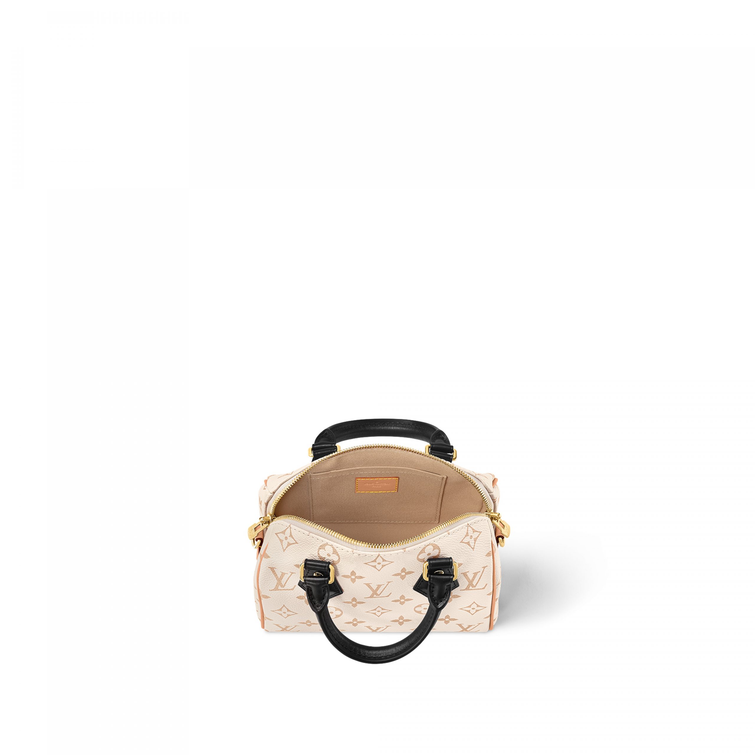 This edition of the iconic Speedy 20 Bandoulière handbag displays the new Monogram Dune canvas, introduced at Cruise 24. Soft yet strong, the sand-inspired colorway is enhanced by Toron handles in black leather and a detachable strap in natural cowhide. Gleaming golden hardware, including a signature padlock, finishes this effortlessly stylish city bag.