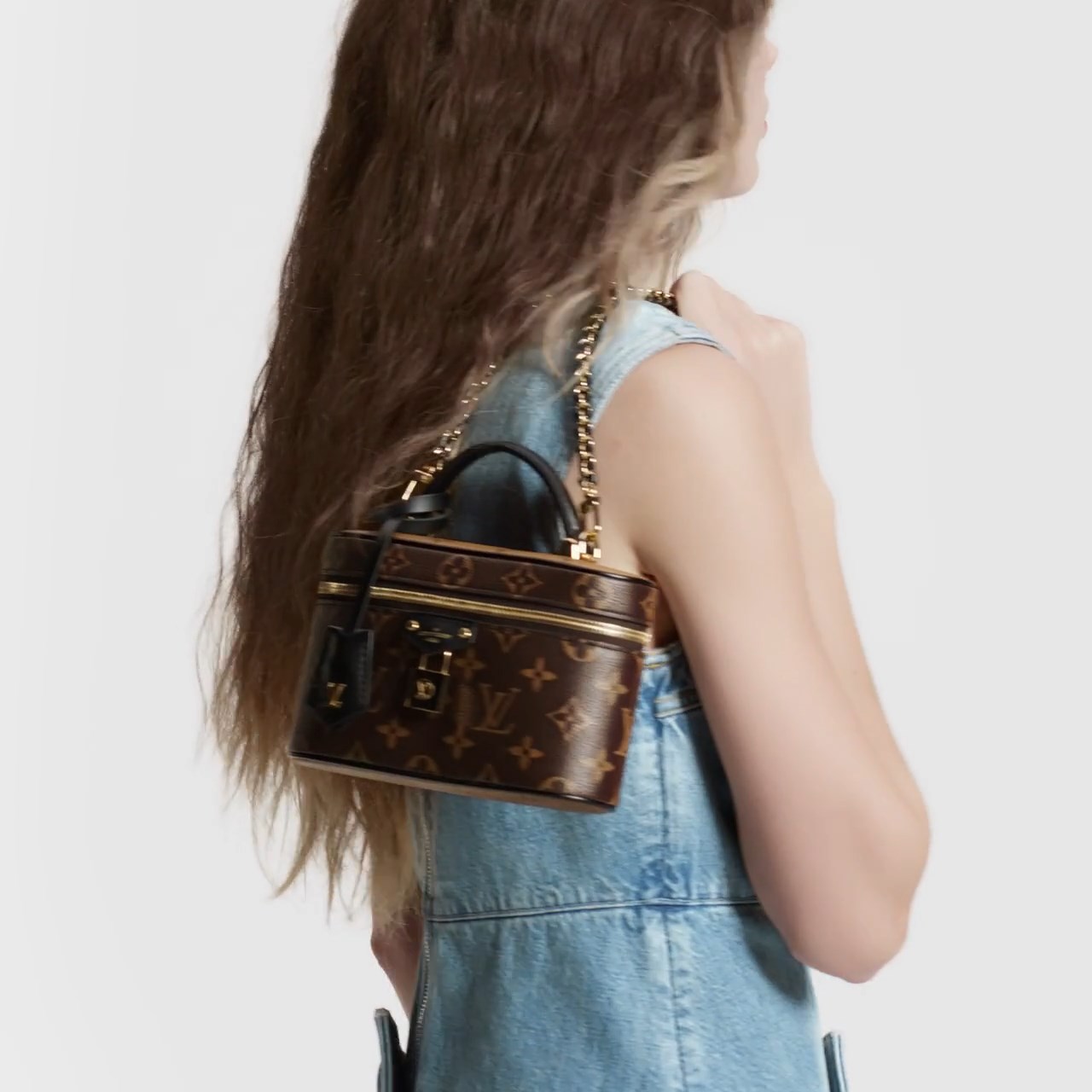 Inspired by heritage vanity cases, the Vanity Chain Pouch in Monogram canvas embodies the spirit of travel. This sophisticated, slim-line bag is complemented by leather trim on its top handle and removable, braided chain. It is notable for its rich signature details, including an LV-engraved padlock and a leather key bell.
