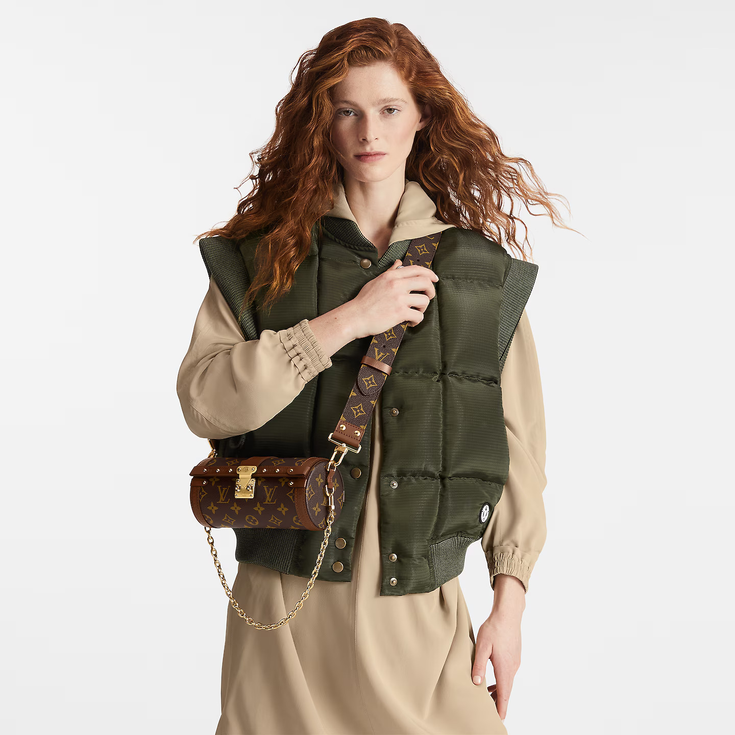Nicolas Ghesquière introduces a new shape – both feminine and casual – inspired by Louis Vuitton’s archives: the Papillon Trunk handbag. The iconic Papillon duffle bag is transformed into a structured, geometric silhouette that is squarely on-trend. The S-lock, LV-embossed trimmings and studs pay homage to the House’s trunkmaking beginnings.