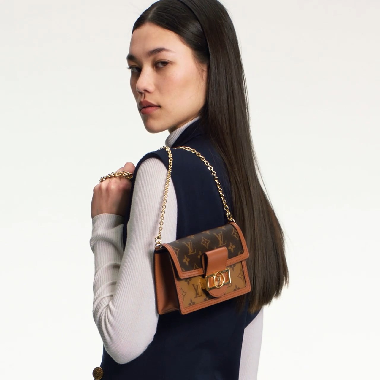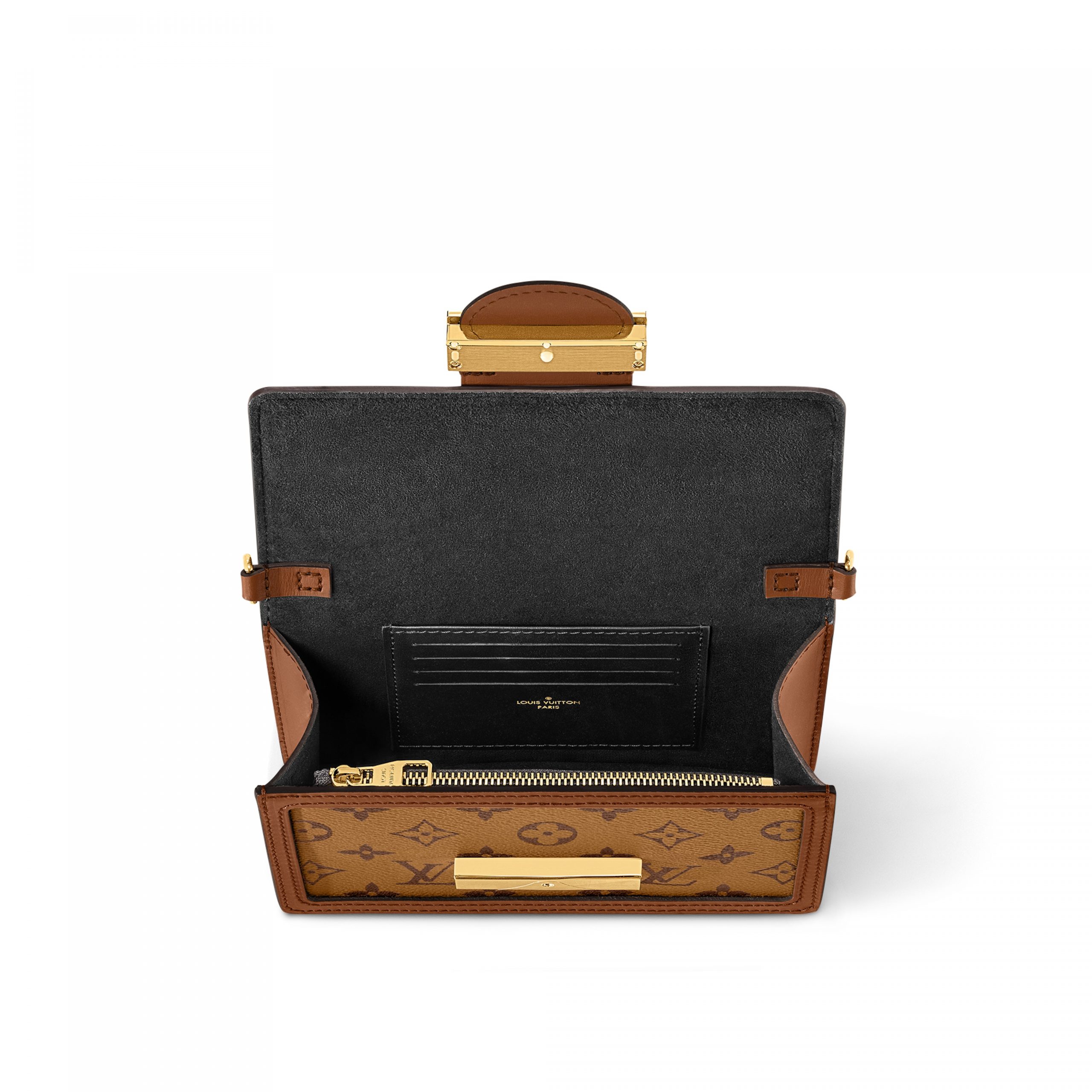 Combining Monogram and Monogram Reverse canvas, the Dauphine Chain Wallet reprises all the signatures of the iconic Dauphine collection: the vintage look, the calf-leather trim and the LV Circle clasp. This neat yet spacious wallet features a removable gold-tone chain, enabling it to be carried in several different ways.