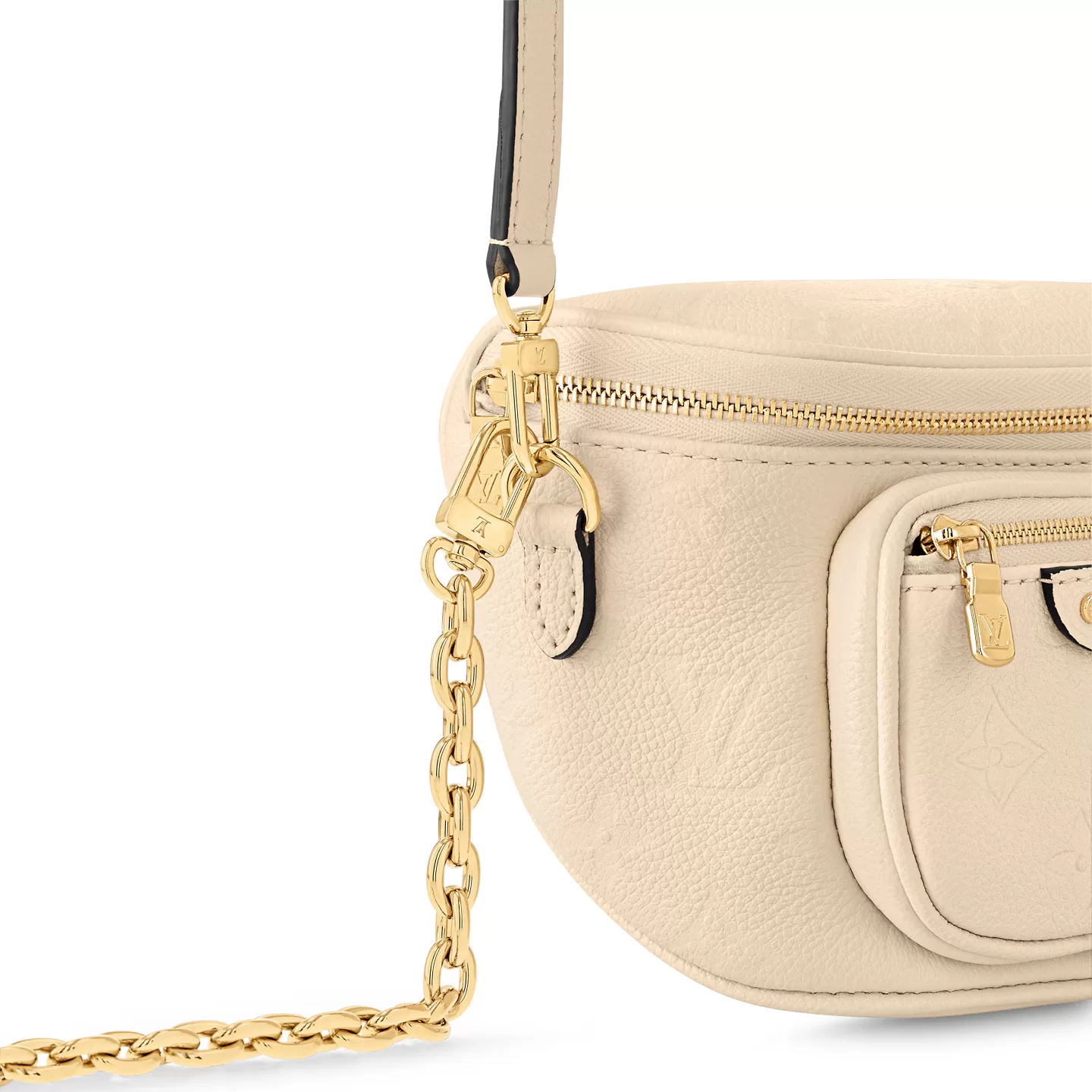 The Mini Bumbag is reinterpreted in supple, grained Monogram Empreinte leather, which is embossed with the Monogram pattern. This on-trend piece features a removable, adjustable strap and a removable, gold-tone chain for different looks and carry options. It has a zipped main compartment and a zipped front pocket with an embossed leather tag.