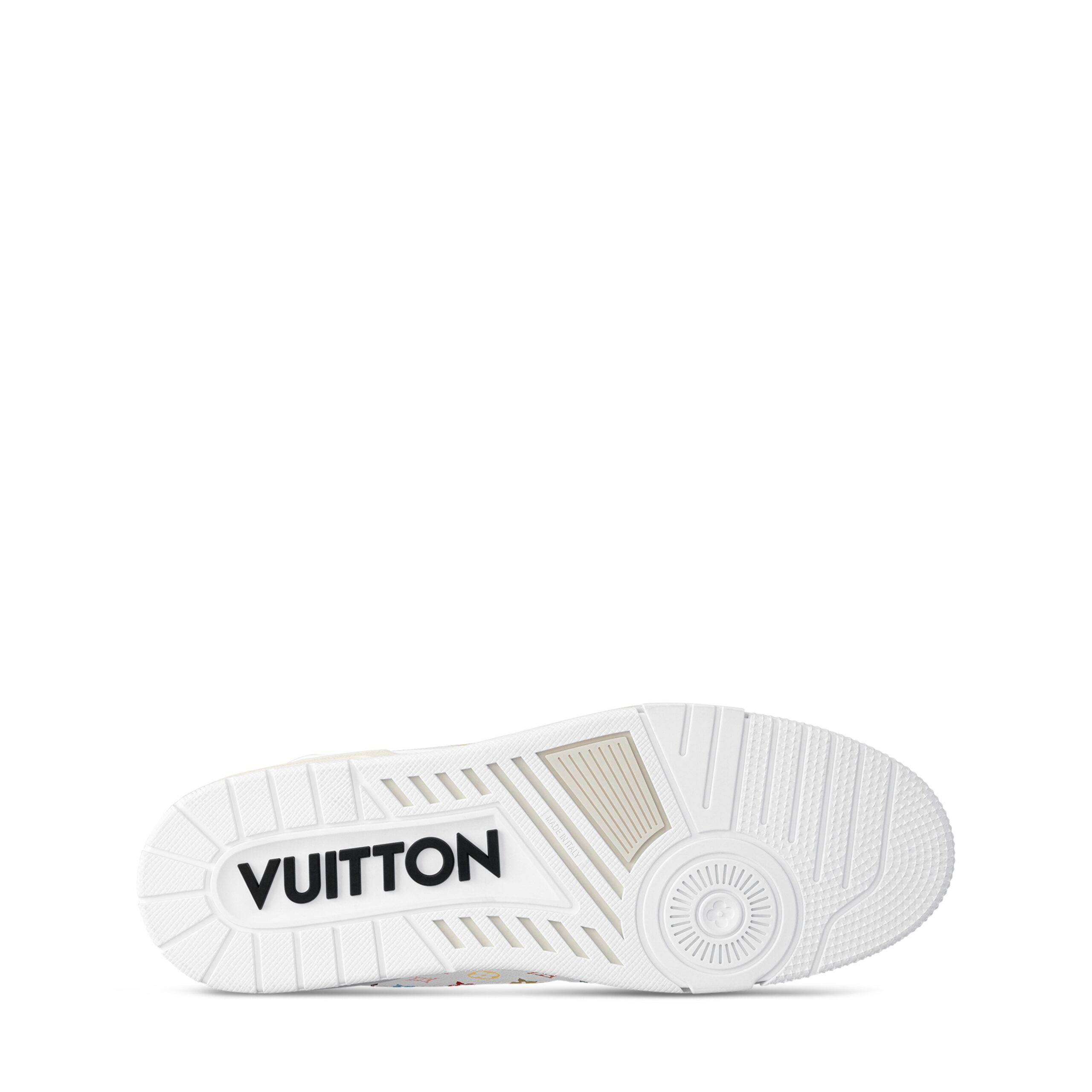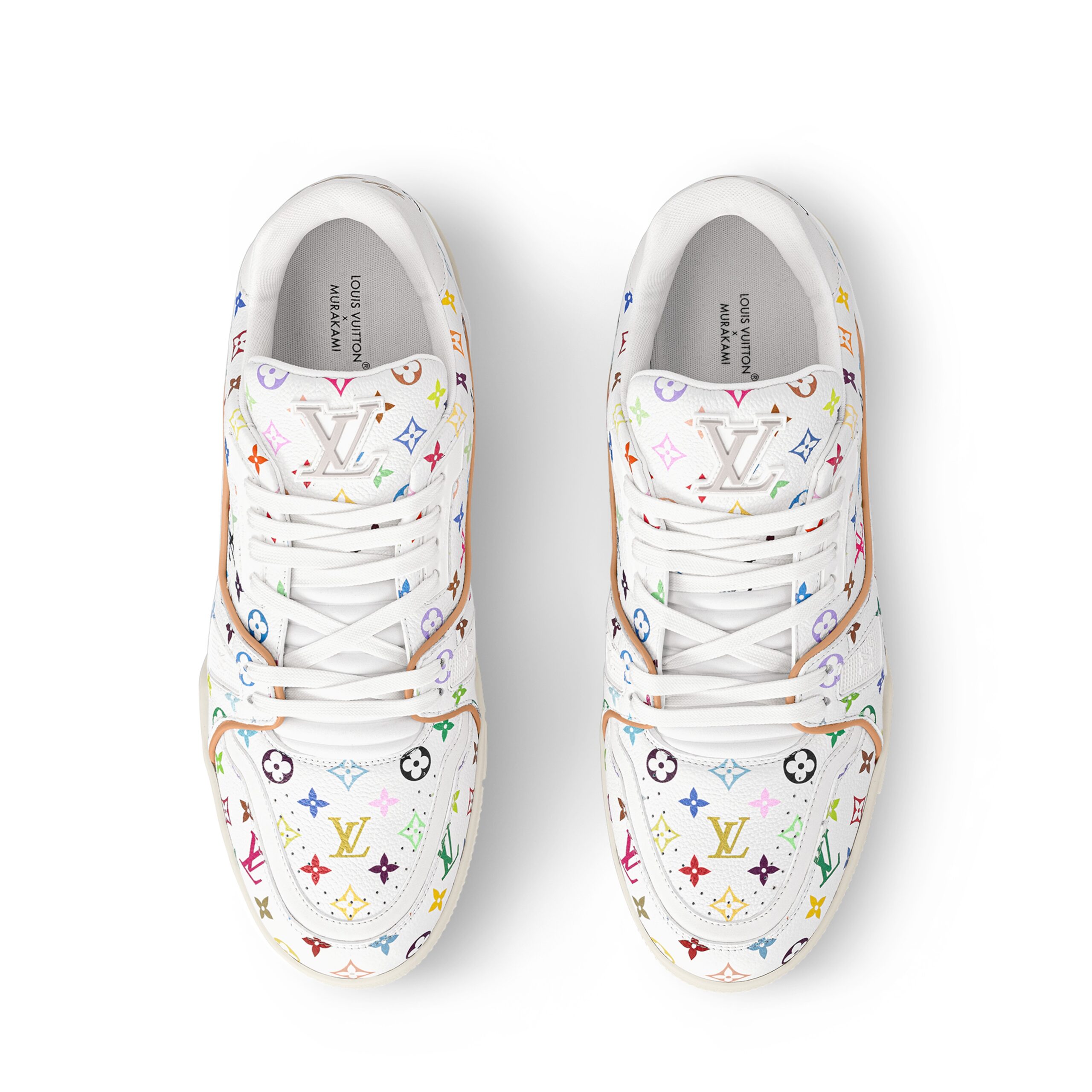 The iconic LV Trainer sneaker makes a fresh statement in grained calf leather featuring an allover print of a multicolored Monogram motif from the re-edition of Louis Vuitton x Murakami collection, inspired by the artist’s exuberant aesthetic. Informed by vintage sporty styles, the upper is detailed with a cursive Louis Vuitton signature, while the back is printed with the number 54 in reference to 1854, the year the House was founded.