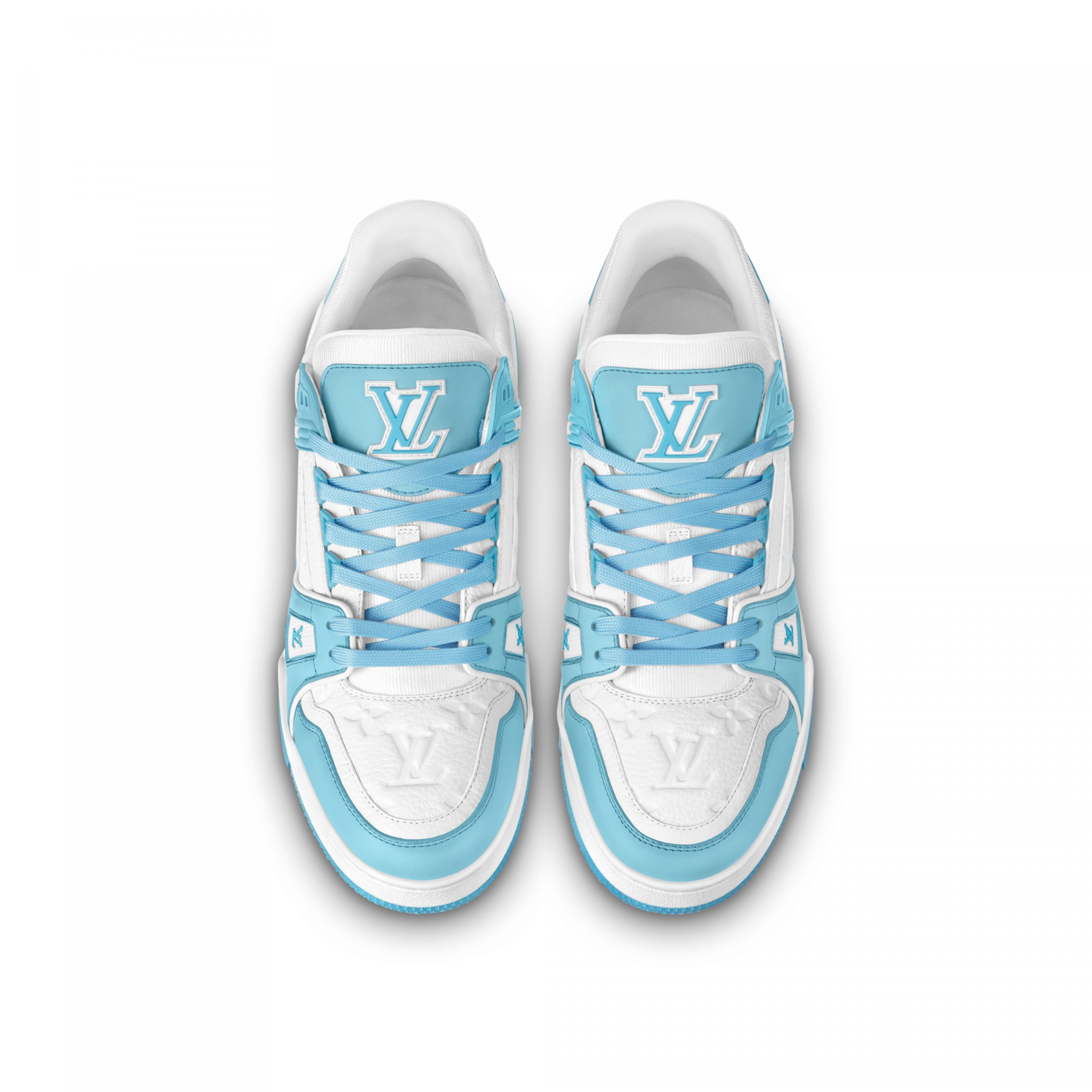 This edition of the LV Trainer sneaker teams smooth calf leather with grained calf leather embossed with Louis Vuitton’s signature Monogram pattern. This cult model was designed by Virgil Abloh, who drew inspiration from vintage basketball sneakers. It is revisited in pastel colors highlighting the elaborate construction of its upper, which takes seven hours to stitch.